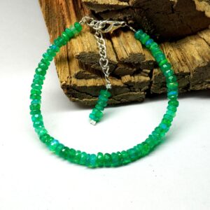 Beautiful 925 Silver Green Ethiopian Opal Faceted Rondelle Beaded Bracelet, Opal Bracelet, Gift For Her